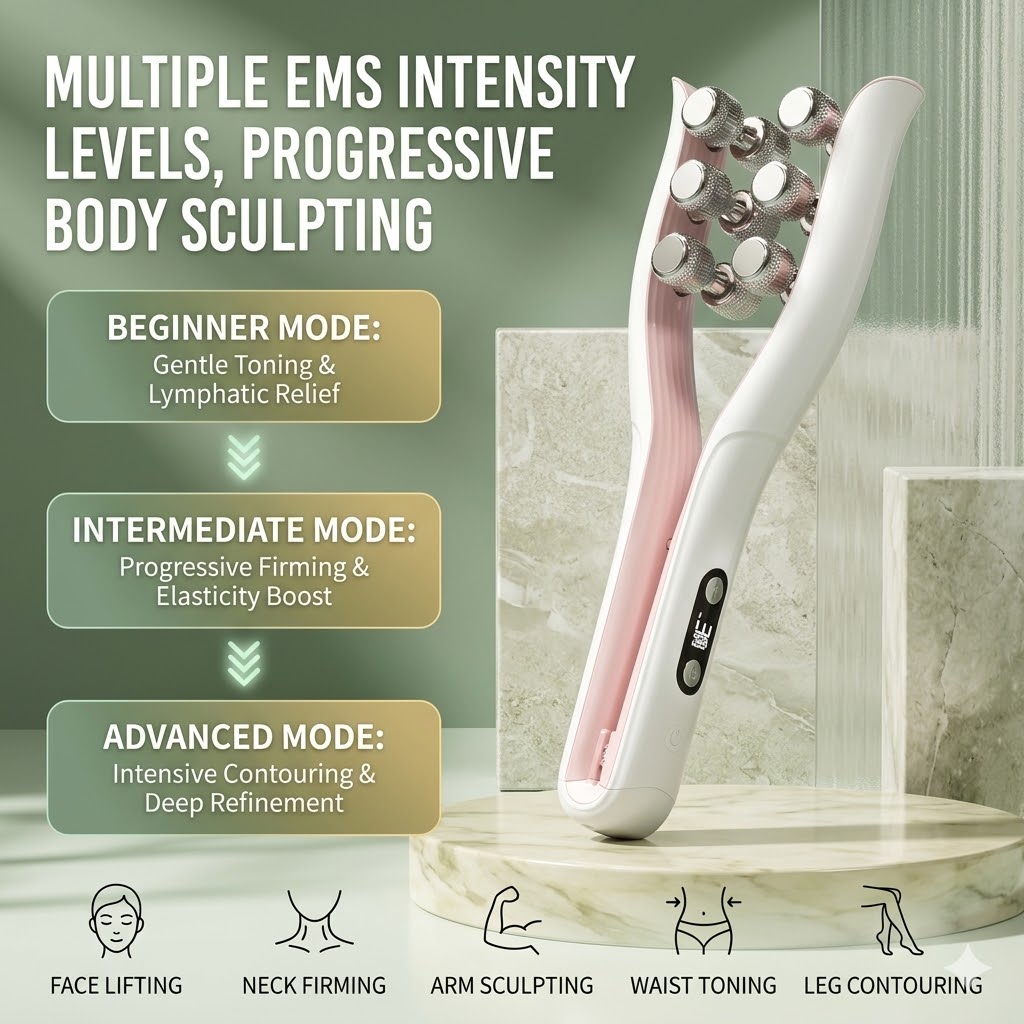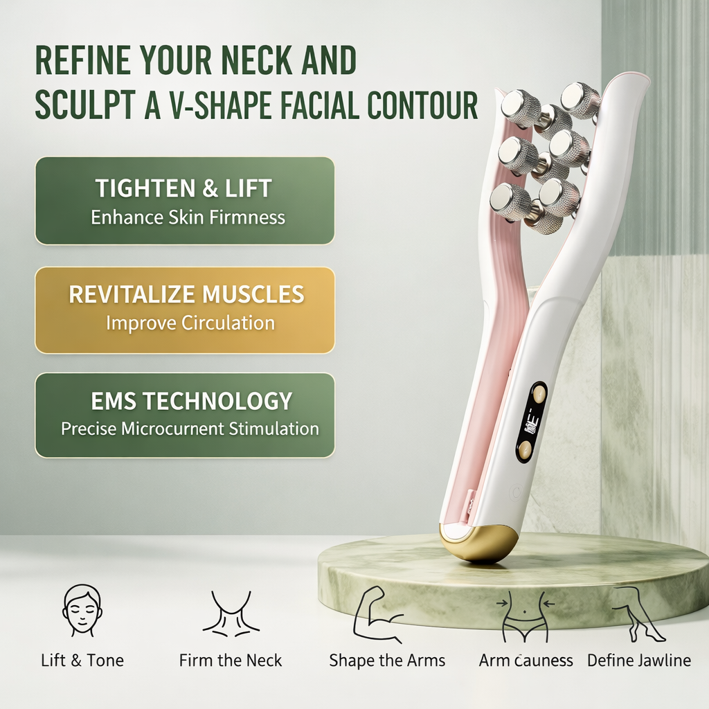 Transform Your Silhouette from Face to ToeAre you struggling with a "double chin," morning puffiness, or stubborn areas on your arms and legs? The Showell 12-Wheels EMS Roller is engineered to redefine your contours using professional-grade microcurrent technology and ergonomic mechanical kneading.