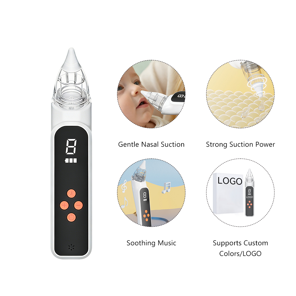 The new-generation baby nasal aspirator combines powerful suction with gentle care, ideal for newborns, infants, and toddlers. Featuring 9-speed adjustable suction (50–60 KPA), caregivers can precisely select from gears 1–9 for delicate newborn mucus, runny noses, or thick nasal congestion. The built-in LED/LCD display clearly shows suction level, battery status, and mode for easy monitoring. Rechargeable via USB‑C (1200mAh battery) for convenient at-home and travel use. Soft, medical-grade silicone tips in multiple sizes ensure a comfortable, snug fit while the anti-backflow design and detachable washable collection cup maintain hygiene and reduce contamination risk. Low-noise motor plus soothing built-in music minimize distress, and the lightweight ergonomic body (~175g) enables one-handed operation. Ideal use cases: daily snot removal, cold relief, pre-feeding nose clearance, daycare centers, and travel. SEO keywords included: baby nasal aspirator, electric nasal aspirator for babies, LED display nasal aspirator, 9-speed baby nasal aspirator, USB‑C rechargeable nasal aspirator, silicone tip nasal aspirator, anti-backflow washable baby nasal aspirator, quiet baby nasal aspirator, newborn nasal aspirator.