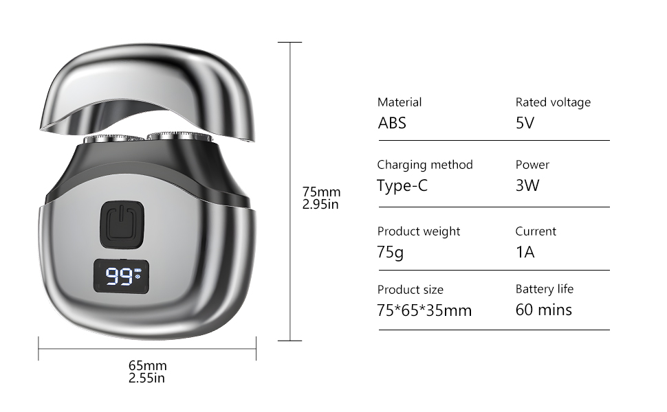 Introducing the Mini Electric Shaver, a state-of-the-art grooming tool designed for men who value efficiency and convenience. With its compact size (75*35*65mm) and lightweight design (only 75g), this shaver is perfect for travel, fitting seamlessly into your toiletry bag.