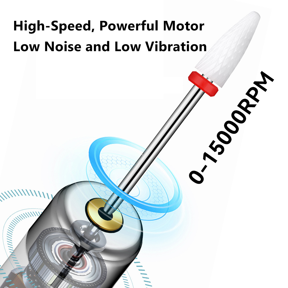 Corn-Shaped Ceramic Head — remove hard dead skin and cuticle near nail edges; good for both nails and heels.